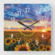 Sonnenuntergang mit Schönheit der Sonnenblumen - R Quadratische Wanduhr