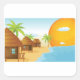 Sonnenuntergang mit Strohhütten Quadratischer Aufkleber