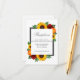 Das Design besticht durch elegante Sonnenblumen, Rose und Wildblumen mit einer goldgelben, roten und orangefarbenen Sonnenuntergang. Das Design verfügt auch über einen kohlegrauen Rahmen. Sie können die Hintergrundfarbe auf der Vorderseite und zurück in die gewünschte Farbe ändern oder beide Set in Weiß verlassen werden.