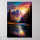 Ein atemberaubender Sonnenuntergang malt den Himmel über einen wunderschönen Bergfluss. An beiden Ufern stehen hohe Kiefernbäume als schweigende Zeugen des Spektakels. In der Ferne vervollständigt ein majestätischer Berg diese ruhige und beeindruckend inspirierend Landschaft und verlasse einen unauslöschlichen Eindruck von denen, die sie sehen.