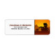 Auf diesem Adressetikett steht ein Silhouette-Paar, das mit einem Motorrad mit Sonnenuntergang oder Sonnenaufgang auf den Bergen fährt.