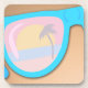 Ein epischer, Vintager Sonnenuntergang, der sich in einer Sonnenbrille in neonfarbener Sonnenbrille wiederspiegelt, neoniert unterhaltsame Sonnenuntergangsschirme Augen illustrierte Vintage Vaporwave Ästhetik in den 80er Jahren tropische Sommervibes Sonnenschein Cartoon's Untersetzer Set. Holen Sie sich heute ein paar lustige Sonnenbrillen-Untersetzer.