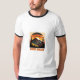 Sunset-Horizont-Abenteuer Sonnenaufgang Vintager Vektor lustige niedliche Reise Camping Strand