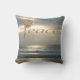 Das pazifische Sonnenuntergang-Foto, das auf diesem Kissen zu sehen ist, wird durch das Wort "Ruhe" ergänzt, das in Gold erscheint und mit einem handgefertigten Buchstaben P versehen ist. Der Buchstabe P wurde aus kleinen Muscheln erstellt. Die solide Farbe des Rückenkissens kann individuell angepasst werden, und es gibt viel Platz, um Text oder Foto nach Ihren Wünschen hinzuzufügen.