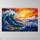 Sonnenuntergang über dem stürmischen Ozean, Buntgl Poster