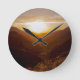 Sonnenuntergang über der Berglandschaft Runde Wanduhr