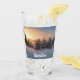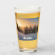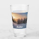 Sonnenuntergang über gefrorenem Schneewald in der Glas