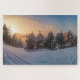 Sonnenuntergang über gefrorenem Schneewald in der Puzzle