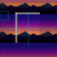 Dieses Gewebe wird mit einer endlosen Szene der Sonneeinstellung hinter Bergen gedruckt. Die Landschaft ist eine Fliese, die nahtlos von links nach rechts verlaufendes verbindet. Die Sonne ist auf dem Horizont so dort ist nur ein wenig vom Gelb niedrig, das im Himmel verlassen wird, bevor sie in lila dann dunkelblaues schattiert. Die Hügel sind dunkel und gegen den Himmel silhouettiert.