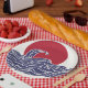 Roter, weißer und blauer Ozean Sonnenuntergang & Wellenpapier Teller. Spaß für den 4. Juli oder ein Party zum Unabhängigkeitstag.