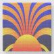 Sun Graffiti Ziegelwand ist ein digitales Kunstwerk mit dunkelblauem Gradientenhintergrund und gelber reflexorangefarbener Gradientensonne am Boden, Sonnenstrahlen leuchten nach oben und nach außen.