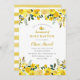 Erschwingliche, maßgeschneiderte, gedruckte Taufe für Mädchen. Dieses frische Sommerdesign hat eine Aquarellblume mit hellgelben Blumen und Pflanzen. Personalisieren Sie die Vorlage mit Ihren Ereignisdetails. Auf der Rückseite befindet sich ein gelb gestrichenes Streifen-Muster oder Sie können das Leerzeichen verwenden, um zusätzlichen Text und Fotos hinzuzufügen. Klicken Sie auf Anpassen, um eine beliebige Hintergrundfarbe auszuwählen und die Schriftart und Farben des Textes zu bearbeiten, um eine einzigartige Taufe oder Weihnachtseinladung für Ihre Tochter zu erstellen.
