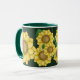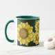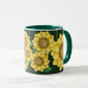 Gelbe Volkskunst-Blumen auf einem dunkelgrünen Hintergrund auf diesem bunten Tassenentwurf - lässt Ihren Morgenkaffee so gut zweimal schmecken!