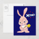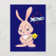 Ein niedlich rosa Cartoon Hasen mit einer Blume, der Umarmungen und Küsse gibt.