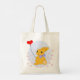 Dieser niedliche Hase hält einen Herzballon, um zu sagen, dass ich dich Liebe. Es trägt einen blauen Bogen, stehend auf einem Meer von rosa Blume. Das ist eine hübsche Tasche, die perfekt für Mädchen ist, die Kaninchen Liebe haben.