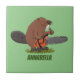 Sonniger Biber mit Kettensäge Cartoon Spaß Fliese