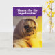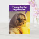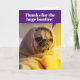 Ein kalter Mops, der in eine Decke eingewickelt ist und dem Geburtstagskind oder Mädchen für das riesige Feuer dankt. Das Innere sagt: "Ich bin jetzt nett und toasty, also blasen Sie die Kerzen auf Ihren Kuchen aus. Herzlichen Glückwunsch zum Geburtstag!"
