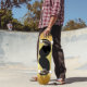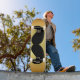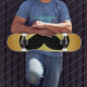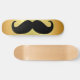 Sonniger schwarzer Schnurrbart auf goldenem Hinter Skateboard