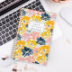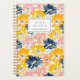 Personalisieren Sie diesen sonnigen Planer mit Ihrem Namen in dunkelblau kursiv gerahmt durch ein weißes Rechteck, auf einem kühnen, farbenfrohen Hintergrund von Aquarellfarben-Blume in den Farbtönen Gelb, Rosa und Marineblau.