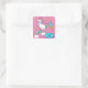 Sonniges Einhorn kackend Regenbogensprinklen auf D Quadratischer Aufkleber