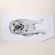 Das Lächeln des Labradors wird in fett schwarz-weiß getönter Schattierung aufgeblasen und wird zu einer strahlenden Aussage über ein Handtuch. Ein idealer Begleiter für sonnige Abenteuer, die jedem Strand oder der Poollounge Freude bereiten.