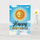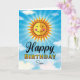 Lassen Sie Ihre Söhne sich an ihrem Geburtstag besonders fühlen, indem Sie ihr diese fröhliche, zauberhafte Sonne in Gelb und Orange schicken, die im blauen Himmel mit Wolken schwebt. Im Text steht: "Die Sonne scheint an dem Tag, an dem du geboren warst, nur etwas heller."