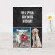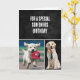 Schwarzes Leder mit Text und niedliche goldene Retriever Hunde zum Geburtstag. Alle Texte können bearbeitet werden.