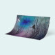 Tief blauer Himmel mit einem geheimnisvollen Halbmond, während Vögel auf einer hübschen dreiseitigen Broschüre fliegen, um sich an ein Erscheinen zu erinnern.