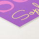 Typografischer Name und Blume rosa, gelb und weiß auf einem lila Hintergrund Yoga matt Design. Die Hintergrundfarbe kann bei Bedarf geändert werden. Spaß personalisierter Grafik-Text und Blume Kunst Strandtuch. Personalisieren Sie mit Ihrem eigenen kurzen Namen, liest derzeit Sophia für Hilfe bei Personalisierung und andere Namen Länge bitte kontaktieren Sie mich. © Art and Design by Sarah Trett for www.mylittleeden.com