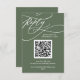 Diese raffinierte, grün QR Code Hochzeit RSVP-Karte aus der Sophia-Sammlung verfügt über Kalligraphie in knusprigem Weiß. Elegant und dennoch draußen - es ist ideal für Hochzeiten im Garten, Weinberg oder Wald mit einem natürlichen, romantischen Ambiente.