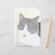 Ein Aquarellbild einer glücklichen, schwarz-weißen Katze namens Sophie. Sie war eine wilde Katze, die durch ihre teilweise Lähmung verwundbar war. Sie wurde von einem Freund gefangen genommen, erhielt tierärztliche Versorgung und lebt jetzt im Haus.