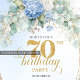 Sophisticated 70th Birthday Blue Hydrangeas Invite Einladung