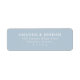 This label features a minimalist design with a soft sky blue background and clean, white sans-serif typography. The layout is simple and balanced, emphasizing readability and elegance through ample negative space. Perfect for formal occasions or personalized stationery, the contemporary style conveys sophistication and calmness, making it ideal for weddings, invitations, or special events.