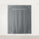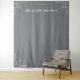 This elegant wedding backdrop features a minimalist design with a solid gray background, accented by clean, symmetrical geometric corner motifs. The layout includes customizable date placeholders and bold typography for names, creating a modern and sophisticated look perfect for formal celebrations. The monochromatic color palette enhances the understated elegance, making it ideal for capturing memorable moments on your special day.