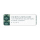 These return address labels feature a sophisticated and minimalist design, perfect for formal occasions. The left side showcases a repeating pattern of stylized leaf motifs in shades of green and teal against a deep navy blue background, creating an organic feel. On the right, clean, modern typography presents customizable text with elegant spacing, enhancing readability and balance. The overall style exudes refinement and tranquility, making these labels ideal for weddings or special events.
