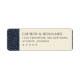 These return address labels feature a sophisticated and elegant design with a balanced layout, combining a dark navy blue section adorned with subtle white polka dots on the left and a light cream background on the right. The typography is clean and classic, utilizing bold serif fonts for a formal appearance that highlights customizability for names and addresses. The overall style exudes sophistication and formality, making these labels perfect for official correspondence or special announcements. The understated motifs and harmonious color palette create a timeless look ideal for those seeking a polished and refined aesthetic in their stationery.