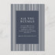 This wedding enclosure card features a sophisticated design with vertical stripes in alternating white and dark gray, creating an elegant backdrop. The central navy blue rectangle is bordered by thin white lines, providing a clean frame for the text. Classic serif fonts are used to convey formality, with "ALL THE DETAILS" prominently displayed at the top. The minimalist style focuses on clarity and simplicity, making it perfect for directing guests to additional information about the wedding.