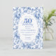 Make this milestone celebration unforgettable with a 50th birthday invitation featuring classic French toile de jouy roses in elegant shades of navy blue, royal blue, dusty blue, and deep blue. This refined floral design blends timeless European charm with modern sophistication, creating a truly classy invitation worthy of a 50th birthday celebration.