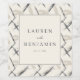 These elegant wedding wine labels feature a minimalist design with an off-white central rectangle framed by abstract brushstrokes in shades of gray and black, creating a sophisticated backdrop. The clean layout highlights customizable names and dates in a classic serif font with a cursive "and," adding a touch of personal flair. Perfect for couples seeking understated charm, these labels convey a modern yet timeless aesthetic ideal for celebrating your special day.