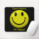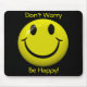 ' Sorgen Sie sich nicht ist glücklich!" mit einem Glänzen kennzeichnet klassischer glücklicher Gesichtsknopf in der Vorlage, traditionelles Gelb mit mutigem Schwarzem alle auf einem dynamischen, kontrastierenden Hintergrund. Ändern Sie leicht den schwarzen Hintergrund zu jeder möglicher Farbe gerade indem Sie auf "klicken, besonders anfertigen ihn" und dann "redigieren Sie" und "Hintergrund", um die schwarze Farbe dann zu ändern. Setzen Sie an ein glückliches Gesicht mit diesem hellen mousepad! Eine große Erinnerung, zum des Lächelns zu behalten, selbst wenn Sie jene gefürchteten Computerprobleme haben! Ein Spaß glückliches gift~get eins für selbst auch!