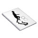 Ein kleiner Junge spielt am Strand in Senegal, Afrika. Eine Schwarz-Weiß-Silhouette eines Fischersohns, der mit diesem uralten klassischen Spielzeug, dem Hoop und dem Stick, beim Surfen spielt. Ein starkes grafisches Design zeigt die Unschuld der Jugend.