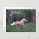 Palomino, der würdevoll im Frühjahr unter Hundeholzbäumen läuft