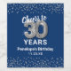 Personalisierte Weinflaschen-Etiketten aus Party aus dem 30. Geburtstag mit einem stylischen blauen Hintergrund, der in jede Farbe verändert werden kann, glamourösem silberfarbenem funkelnd Glitzer, dreißig silbernen Helliumballons und einer einfachen Textvorlage, die leicht zu personalisieren ist.