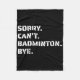 Sorry Cant Badminton Bye - Smashing Serving Jumpin Fleecedecke
