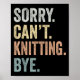 Sorry Can't Knitting Bye Funny Knitting Lovers Poster