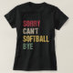 Sorry Can't Softball Bye T-Shirt