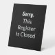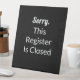 Sie können den weißen Bildschirmtext bearbeiten, um eine benutzerdefinierte Nachricht für Ihr Unternehmen zu erstellen. Auf dem schwarzen Schild steht: Sorry, dieses Register ist geschlossen. Die oberste Zeile des Anzeigetextes ist ein Skript.