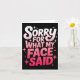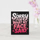 Sorry For What My Face Said Funny Sarcastic Minima Karte