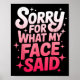 Sorry For What My Face Said Funny Sarcastic Minima Poster