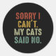 Sorry I Can't My Cats Said No Runder Aufkleber